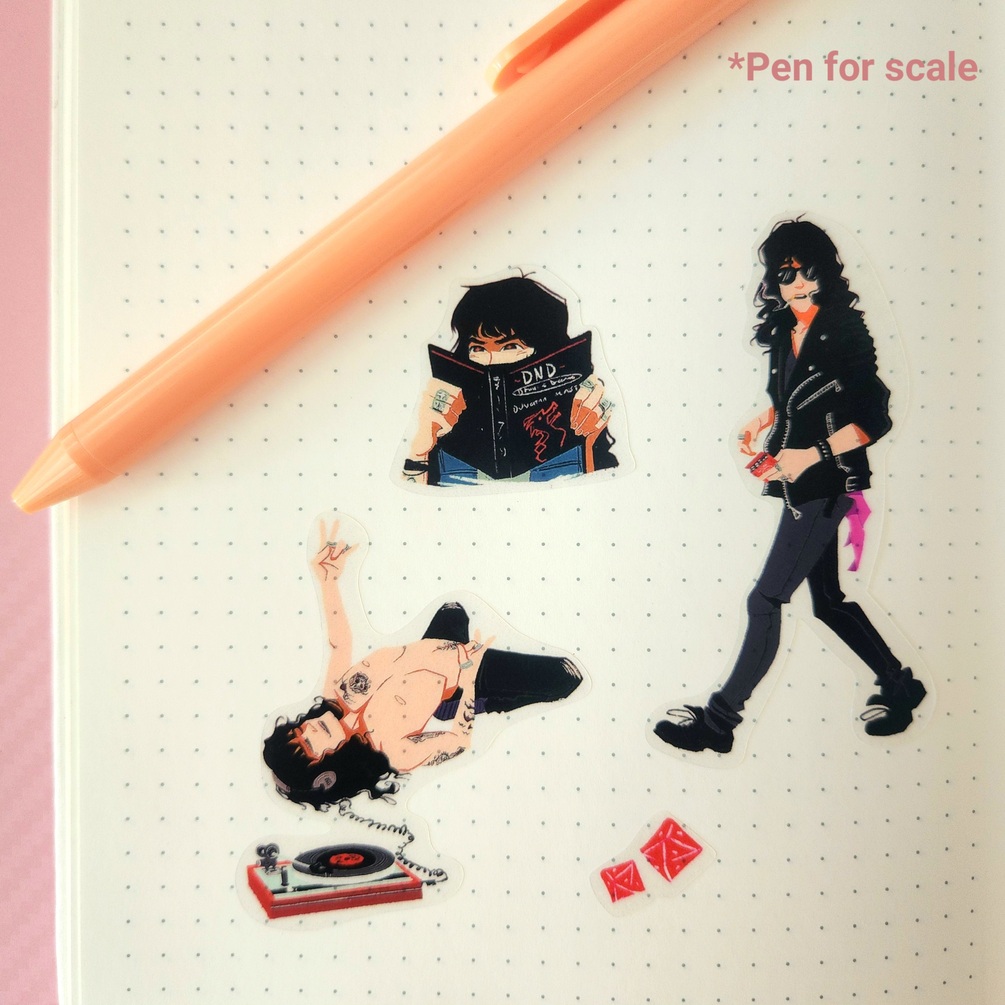 A 5 x 7 sticker sheet featuring some different looks for Eddie Munson from Season 4 of Stranger Things!
